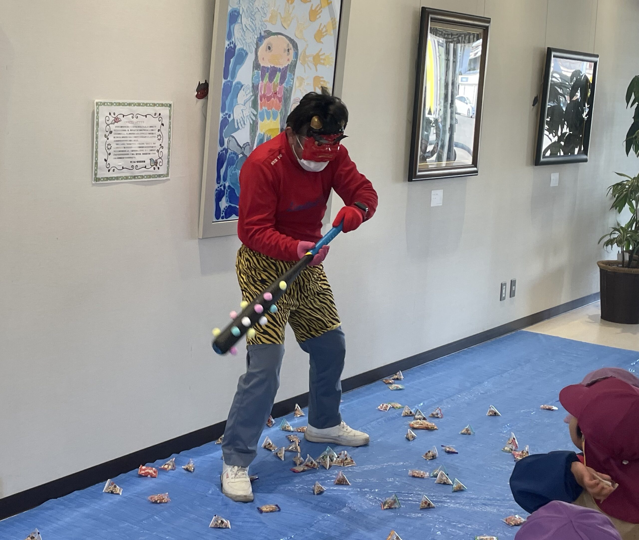 令和8年2月2日(月) 組合会館にて事業所内保育所「すいみい保育園」の園児とともに節分豆まき会を開催しました。 組合職員が鬼に扮し「鬼は外」「福は内」の掛け声に合わせて豆まき、園児と共に一年の無事を祈りました。